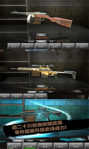 2、玩法非常熱血刺激,在滿是僵尸的世界中搜尋生存物資非常的驚險,玩家可以解鎖更多的武器。
