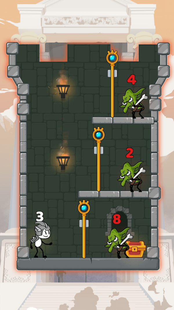 是一款卡通動(dòng)作玩法類型的經(jīng)典具有解謎元素的動(dòng)作游戲。你的工作很簡(jiǎn)單:拉動(dòng)別針,你的騎士將與敵人戰(zhàn)斗。手游中你會(huì)看到他的力量隨著每場(chǎng)戰(zhàn)斗而增長(zhǎng)。你的使命?殺死所有敵人并拯救公主或獲得更多寶藏。很簡(jiǎn)單,但在你采取行動(dòng)之前要三思。