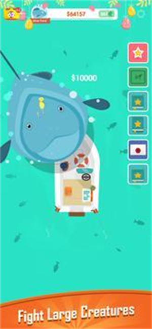 2、每一個關(guān)卡都有終極的大boss魚王,看看你們是否可以將其釣出來。
