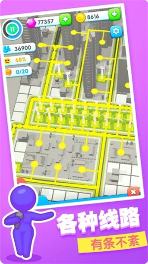 2、發(fā)揮你的創(chuàng)造能力和想像力來玩這款游戲,給建筑物涂上各種顏色。