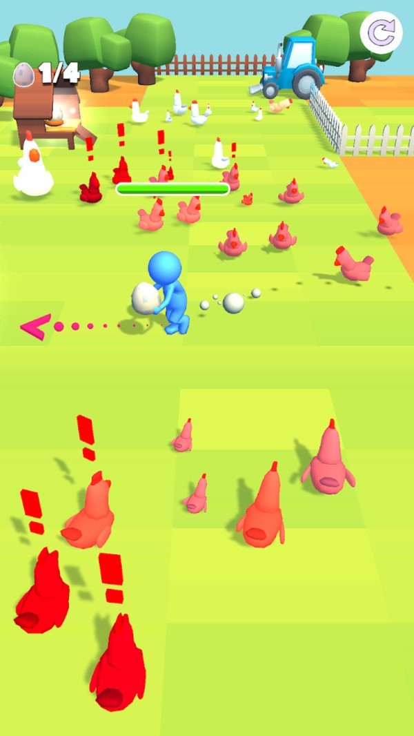 2、偷蛋的任務(wù)看似簡單,但是要想不被母雞“追殺”,就需要玩家有操作水平了。