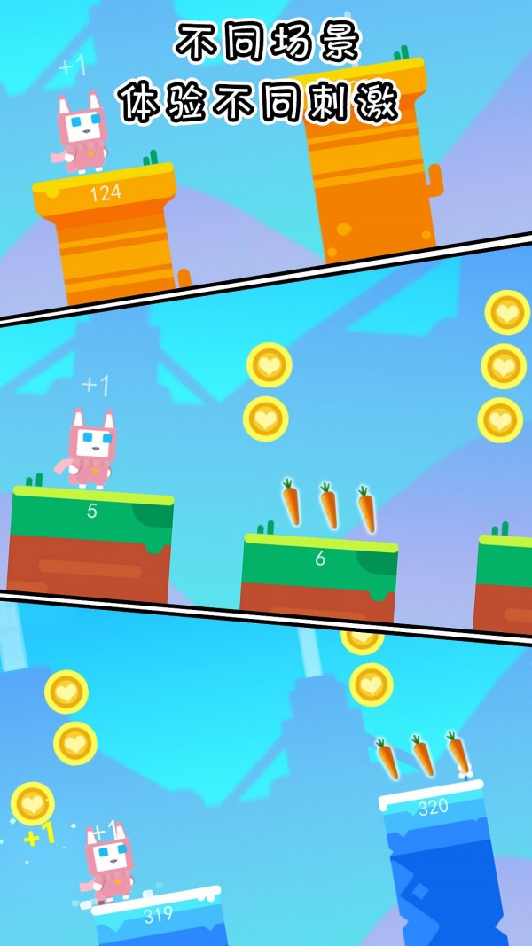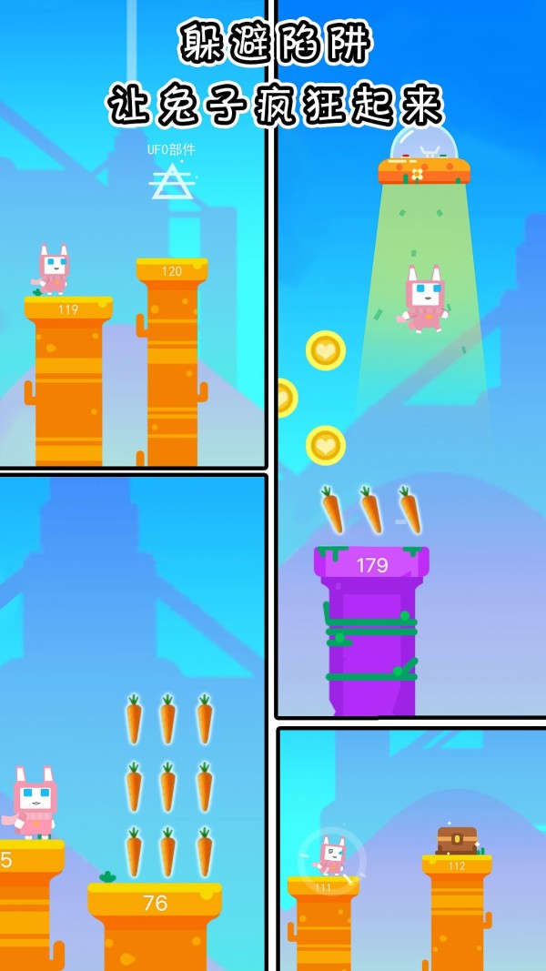 是一個有趣的跑酷冒險游戲,控制兔子人前后翻滾,在森林里蹦跳,不斷收集胡蘿卜,并在恰當?shù)臅r機彈跳以越過各種驚險的機關(guān)和障礙。操控極其順手,又極富挑戰(zhàn)性,好玩到停不下來注意,動物跑的越來越快的,后面難度也會越來越高的。