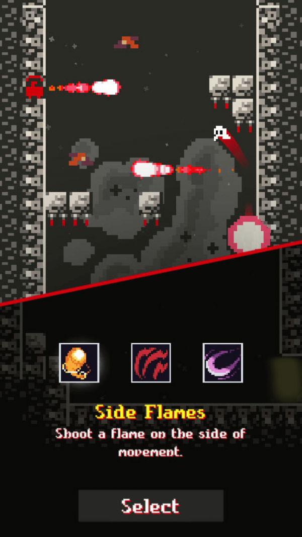 暗黑風(fēng)格的像素冒險(xiǎn)闖關(guān)游戲,游戲融合了全新的射擊元素