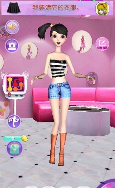 是一款養(yǎng)成類游戲,玩家在游戲中屬于第三人稱,操作相應(yīng)按鈕給女孩搭配服飾,和女孩一起玩耍,跳舞。 當(dāng)女孩饑餓時(shí),給女孩喂食。 當(dāng)女孩困了時(shí),讓女孩睡覺。