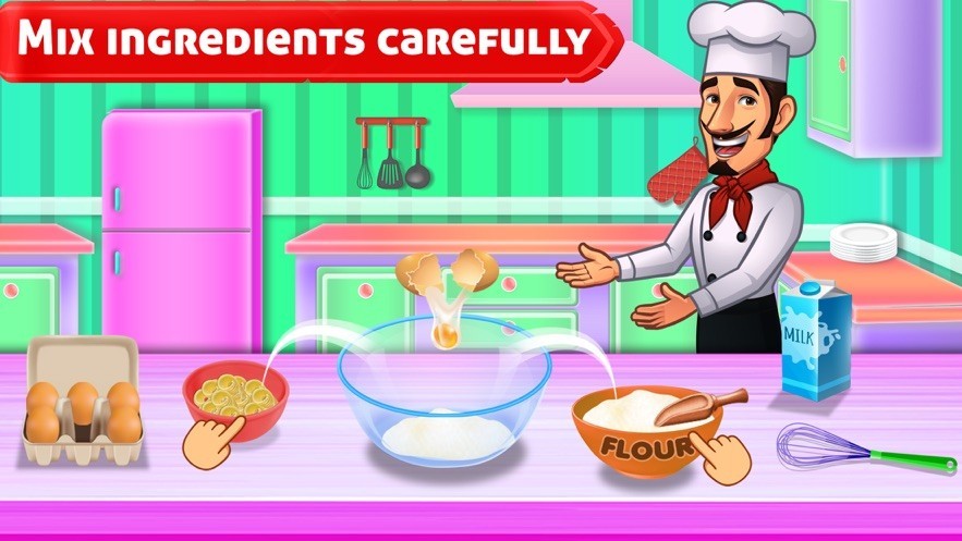 1、在你必須選擇所有你需要的成分,比如游戲的開頭:面粉,奶油奶酪,奶油,鹽,牛奶,肉桂,雞蛋和紅糖;