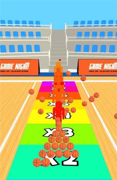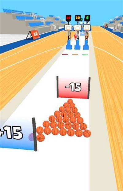 左右滑動屏幕控制籃球經過不同的倍增門,以增加籃球的數(shù)量。