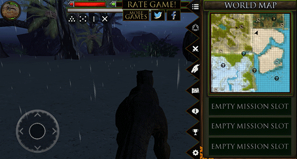 2、點擊左上角的恐龍圖像可以開啟更多界面,如下圖所示,玩家可以查看自己的等級,經(jīng)驗!右下方是生命值、力量、敏捷的屬性,玩家還可以點擊地圖標志來查看自己的位置。