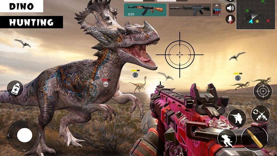 瘋狂恐龍求生是一款休閑射擊生存游戲,在這款游戲中外出尋找恐龍的蹤跡,既不能被怪物發(fā)現(xiàn)也要順利獵殺它們,對于手游來說操作有一些難度,消滅更多恐龍還能對我們基因破解有更多發(fā)現(xiàn)!