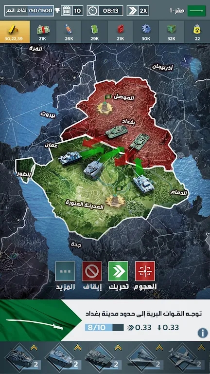 現(xiàn)代戰(zhàn)爭指揮官是一款真實(shí)的戰(zhàn)爭策略游戲,玩家在這里能體驗(yàn)到戰(zhàn)爭的硝煙彌漫和殘酷,一不小心就會面臨滅國的危險(xiǎn),你需要有正確的判斷,幫助我們祖國打贏所有戰(zhàn)役,最后稱霸世界,獲得所有豐富的資源和土地,快來試試吧!