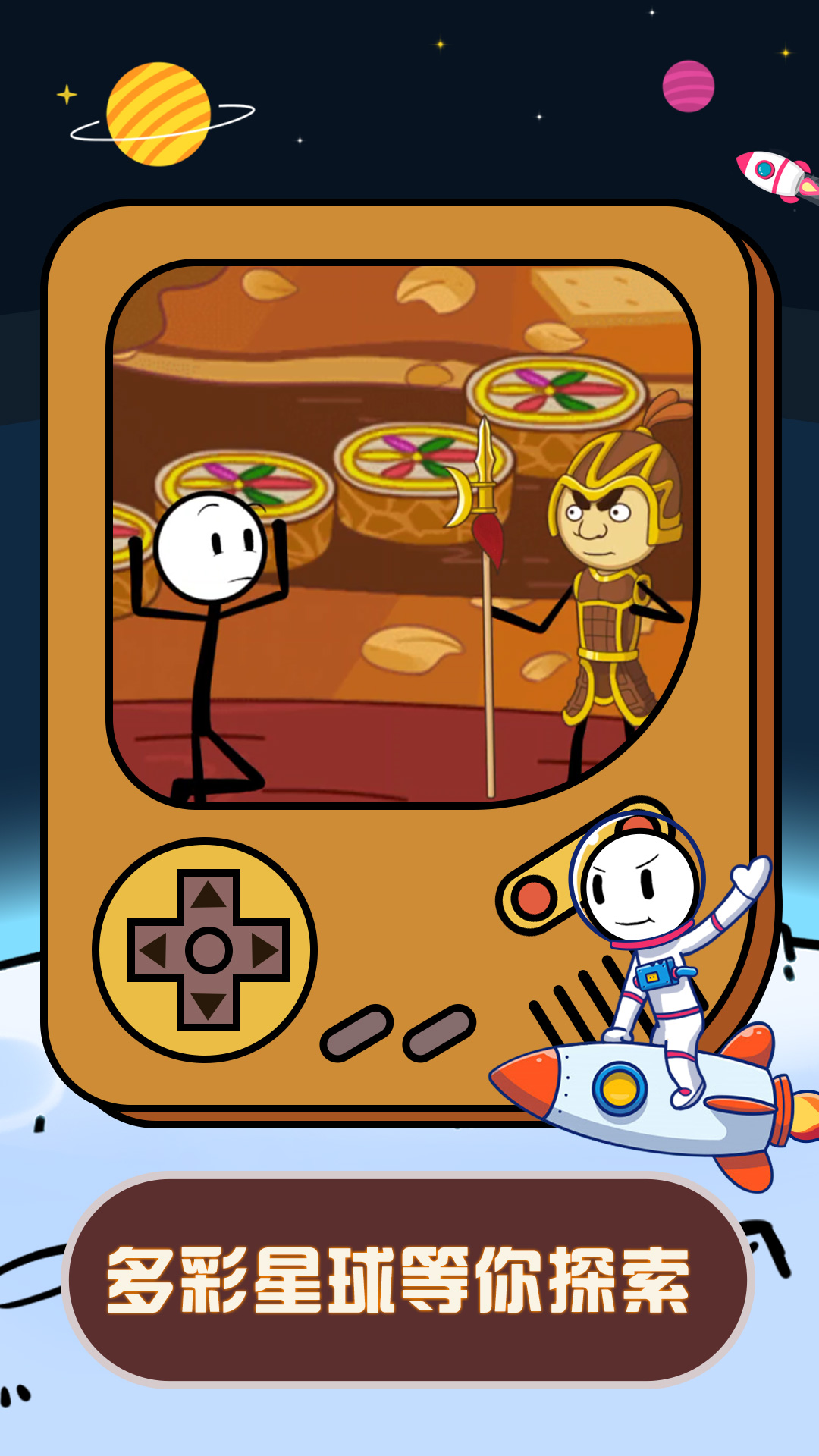 1、和火柴人一起在星際之中一起來完成穿越冒險(xiǎn),開啟你們的尋寶之旅。