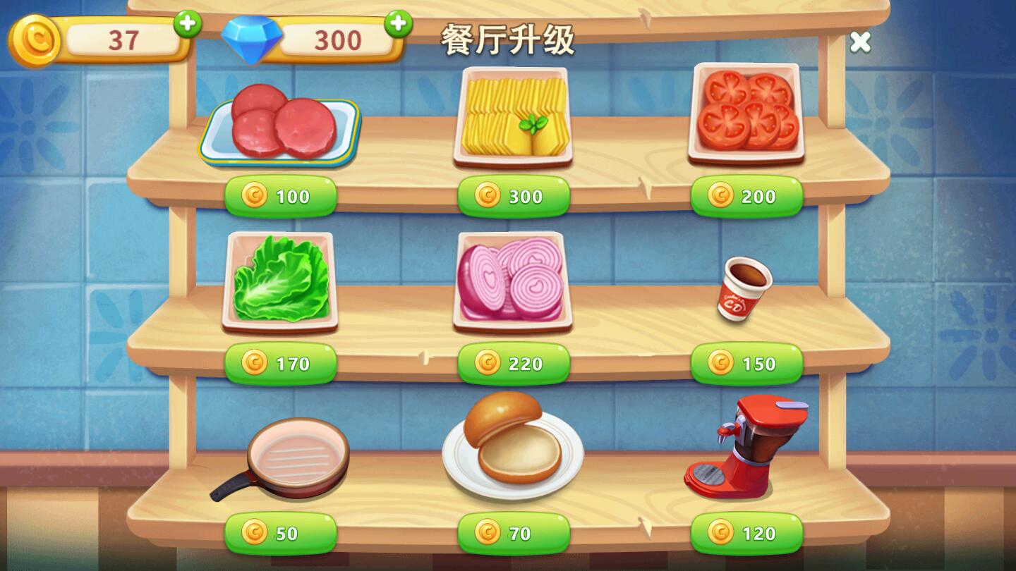 3、賺取足夠多的的盈利,購買更多的裝飾道具,升級你的廚房!