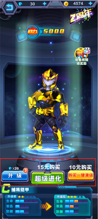 2、玩家可以根據(jù)需求選擇進化方式,小編建議還是點擊升級就好,升級到一定的等級就可以進行進化,其他的還是有點小貴;