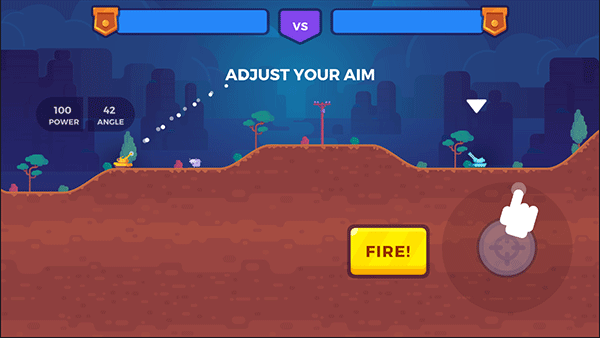 1、漫畫游戲風(fēng)格,超多不同地形的關(guān)卡,尋找最佳戰(zhàn)斗位置,射擊炮彈。