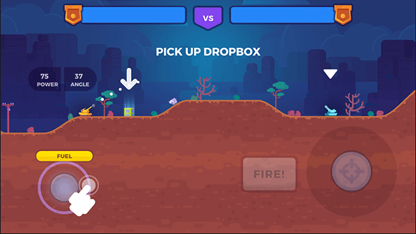 2、右下角的按鍵進(jìn)行瞄準(zhǔn),自己目測可以轟炸到對方時即可點(diǎn)擊“FIRE”發(fā)射;