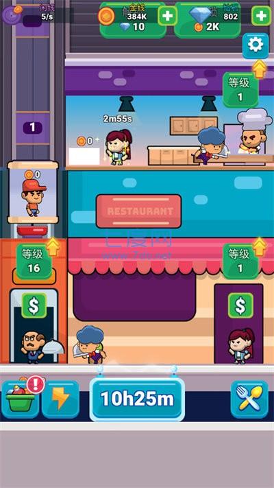 通過(guò)電梯完成外賣,并使用獲得的特殊物品來(lái)擴(kuò)建餐廳并解鎖廚師。