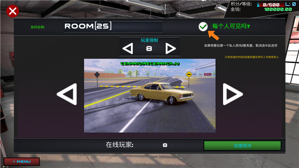 5、在線匹配玩家,如果你只想一個人開房間的話,可以取消每個人可見選項;