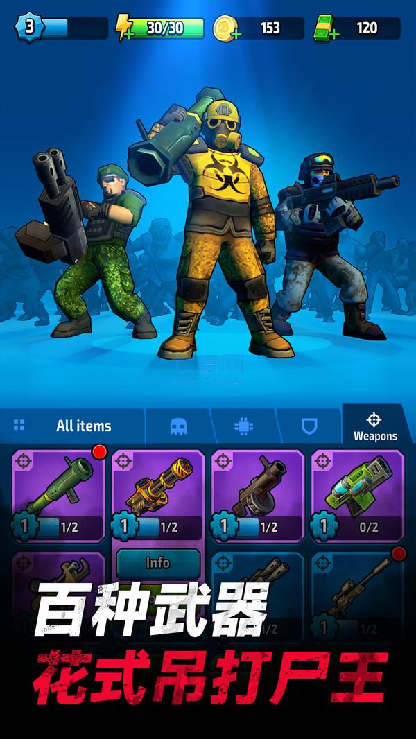 1、你可以通過使用特殊的武器道具,幫助你打敗僵尸,征服整個(gè)世界。