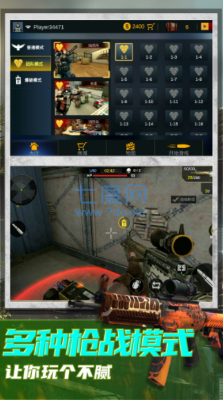 1、瞄準你的對手,積極的開始射擊,海量的武器裝備選擇,縱享精彩。