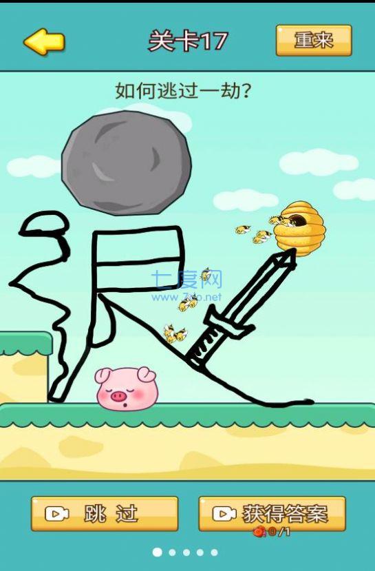 2、每一關(guān),都有一個豬頭等著你開動思維來拯救他!這一次,不再是救救火柴人,而是救救豬頭了!