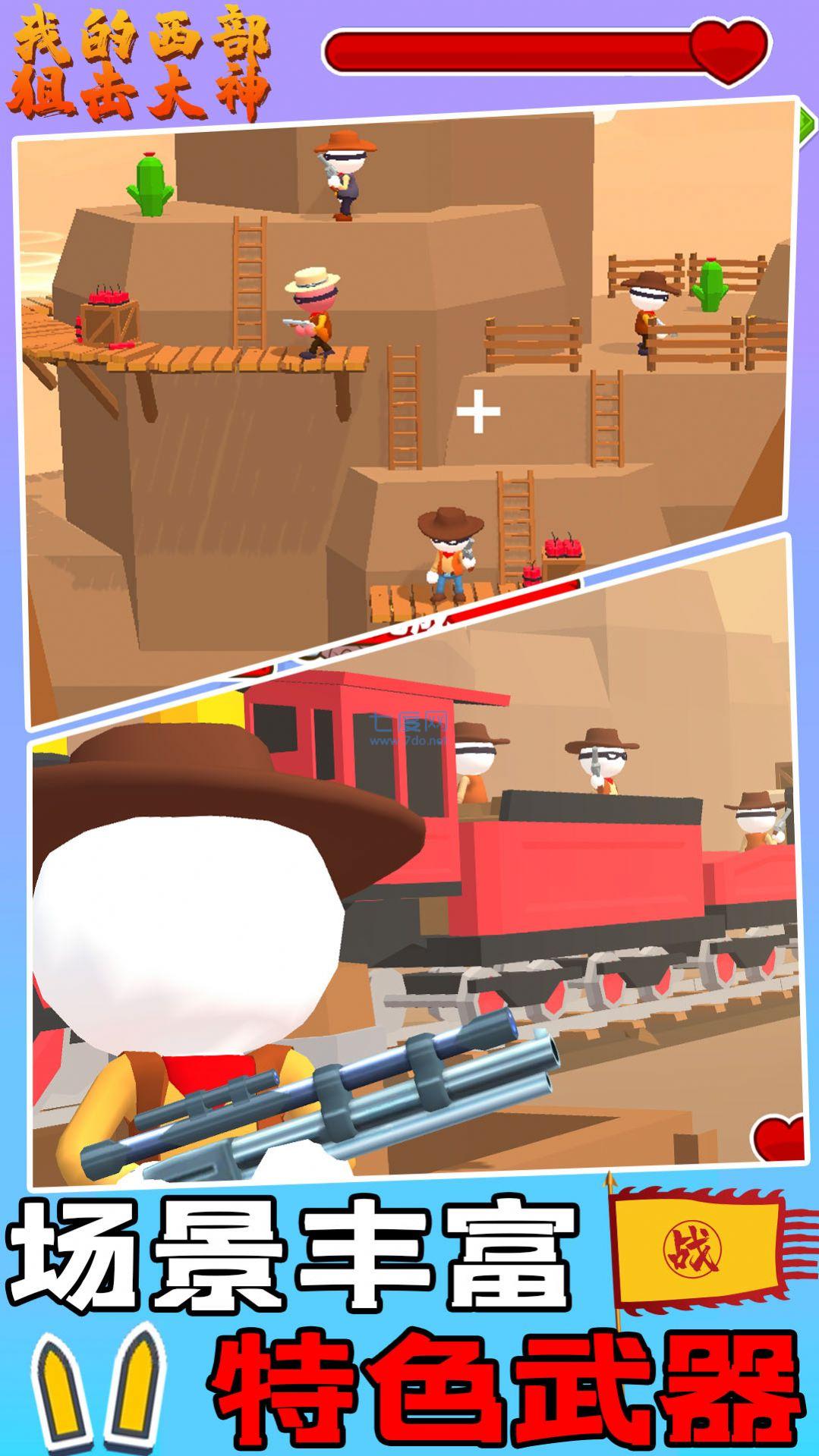 我的西部狙擊大神是一款非常好玩的射擊闖關(guān)類游戲,游戲的畫面采用了卡通風(fēng)格,玩家們將操控角色于廣袤的西部世界當(dāng)中進(jìn)行冒險(xiǎn),你將通過射擊與敵人對(duì)決,游戲非??简?yàn)玩家們的射擊水平,感興趣的小伙伴趕緊來下載體驗(yàn)一下吧!