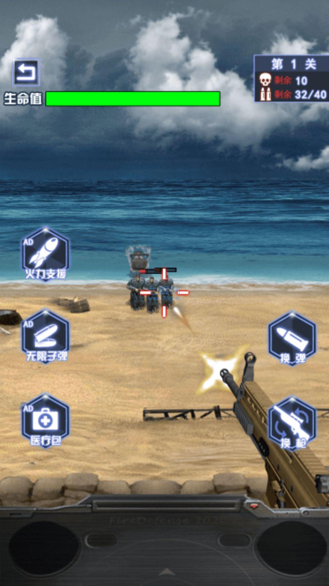 1、逼真的畫面,刺激的射擊玩法,你的任務(wù)就是要控制著炮臺(tái)將敵軍射殺。