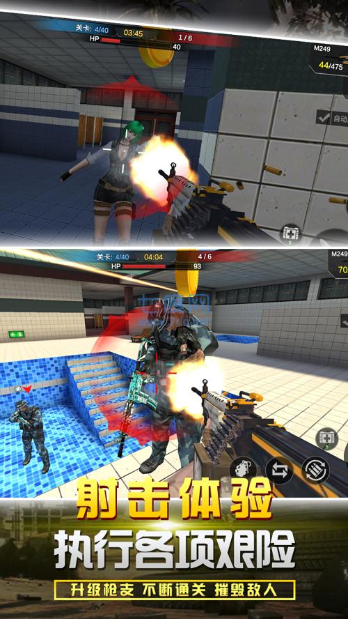 3、多種射擊玩法帶來最好的闖關(guān)體驗(yàn),進(jìn)入不同地圖中瘋狂射擊,擊殺所有的敵人。