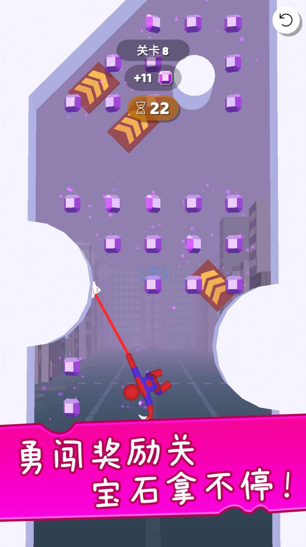 1、輕松有趣的挑戰(zhàn)模式,你可以選擇合適的繩索,在這里極致暢快的移動(dòng)。