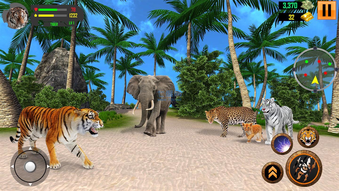 是一款扮演老虎的模擬器游戲,你將成為老虎并且在這個世界生存,森林之王就是你,每天的目標(biāo)就是捕食和休息,在叢林中奔跑跳躍前進,和其他野獸爭奪地盤。玩家可以扮演老虎在叢林中生存,虛擬控制按鍵可以操控老虎的行為,包括移動和拍擊,爪擊等。