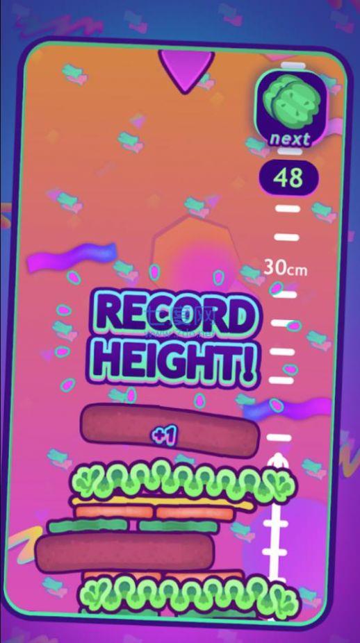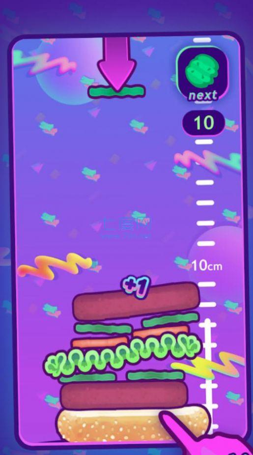 3、不斷堆疊,將漢堡打造的更高,獲取積分,享受歡樂(lè)體驗(yàn)。