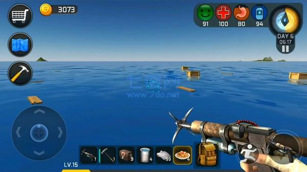 3、你將出生在一艘木筏上,海上會(huì)飄來許多物品,合理使用可以制造出各種生活工具