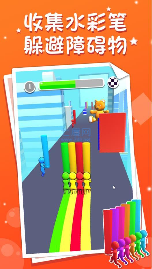 2、指尖輕觸手機(jī)屏幕,控制水彩筆前進(jìn)方向,躲避地圖上的各種障礙。