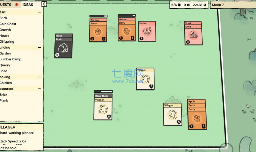 1、村莊建設(shè)游戲,你可以在那里堆疊卡牌以收集食物、修建建筑、并與各種生物戰(zhàn)斗。