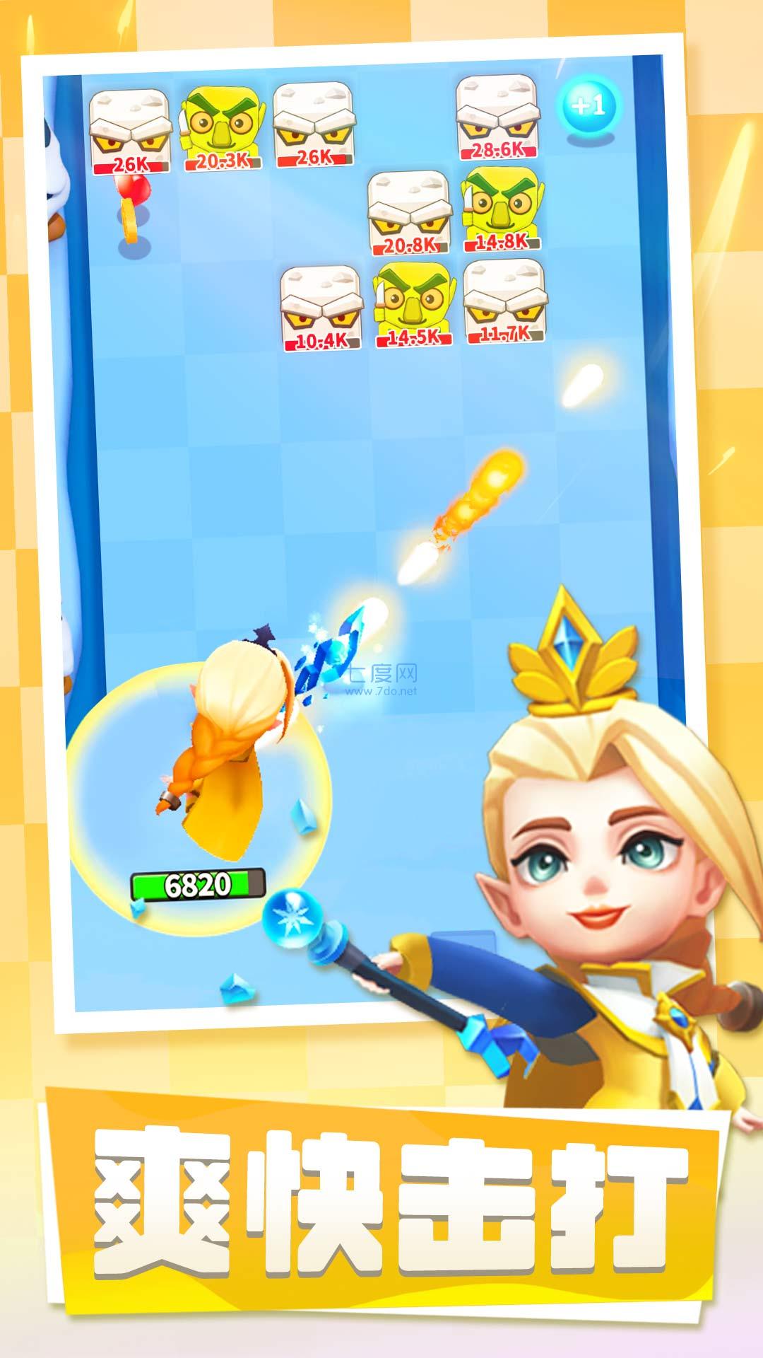 全新休閑roguelikey游戲。游戲的核心玩法與“打磚塊”非常相似。屏幕下方的人物為發(fā)射器,玩家通過滑動屏幕控制子彈的瞄準(zhǔn)路線,松手即可發(fā)射。