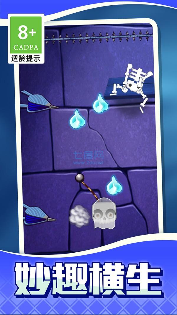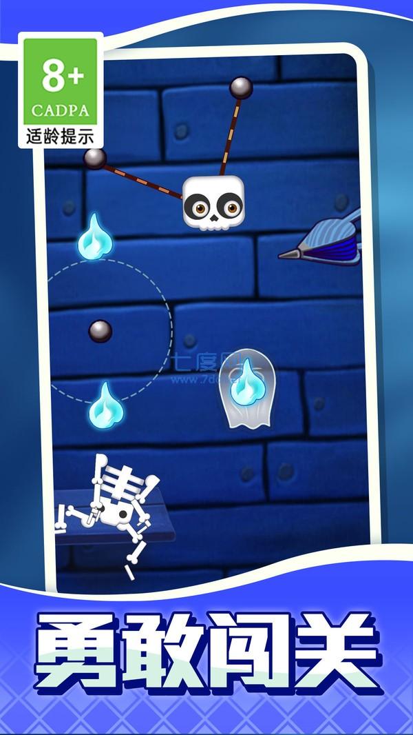 1.骷髏人的骨頭散落再關(guān)卡的各個(gè)地方,玩家要按順序從頭開(kāi)始拼湊骷髏的身體。
