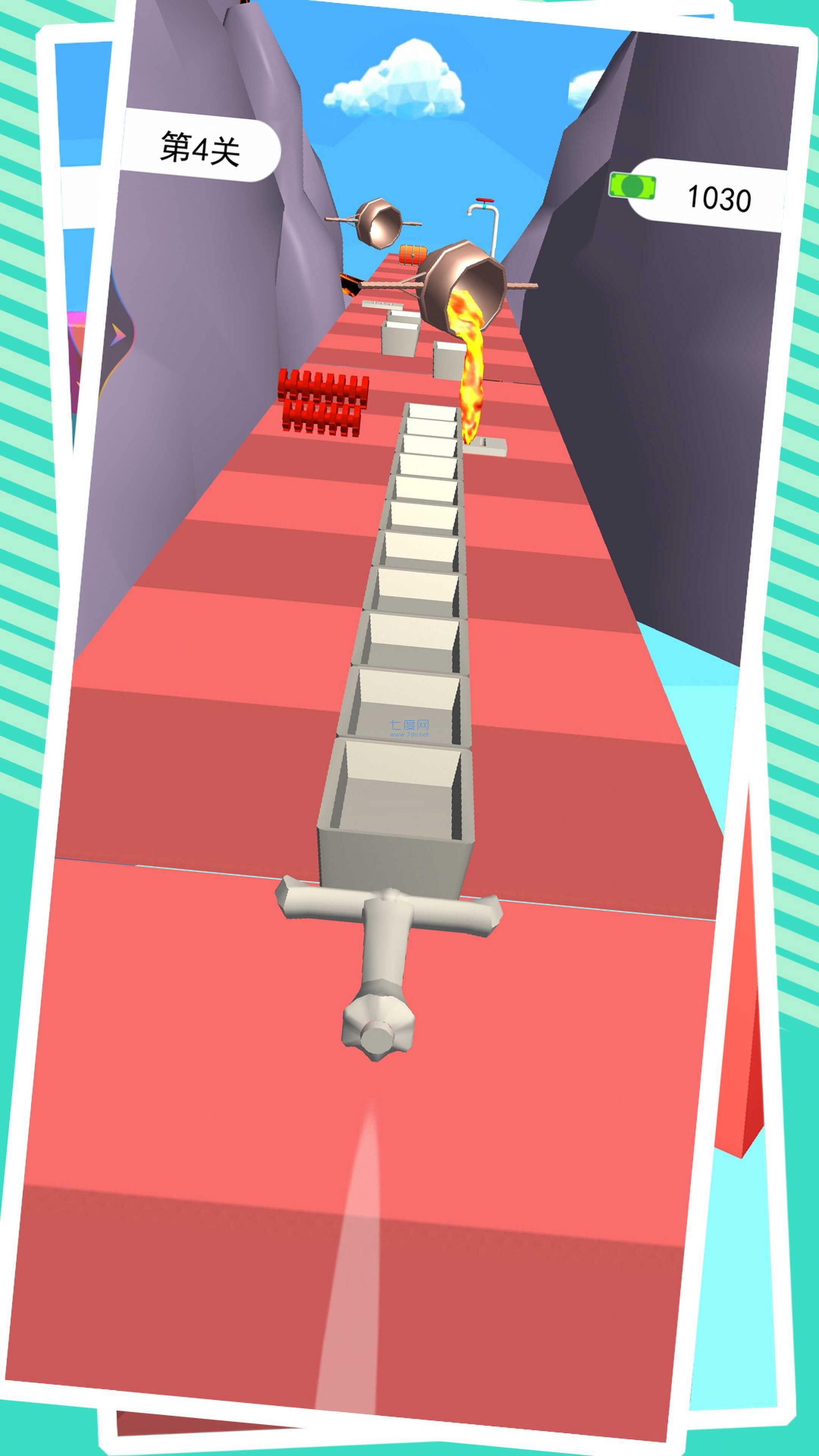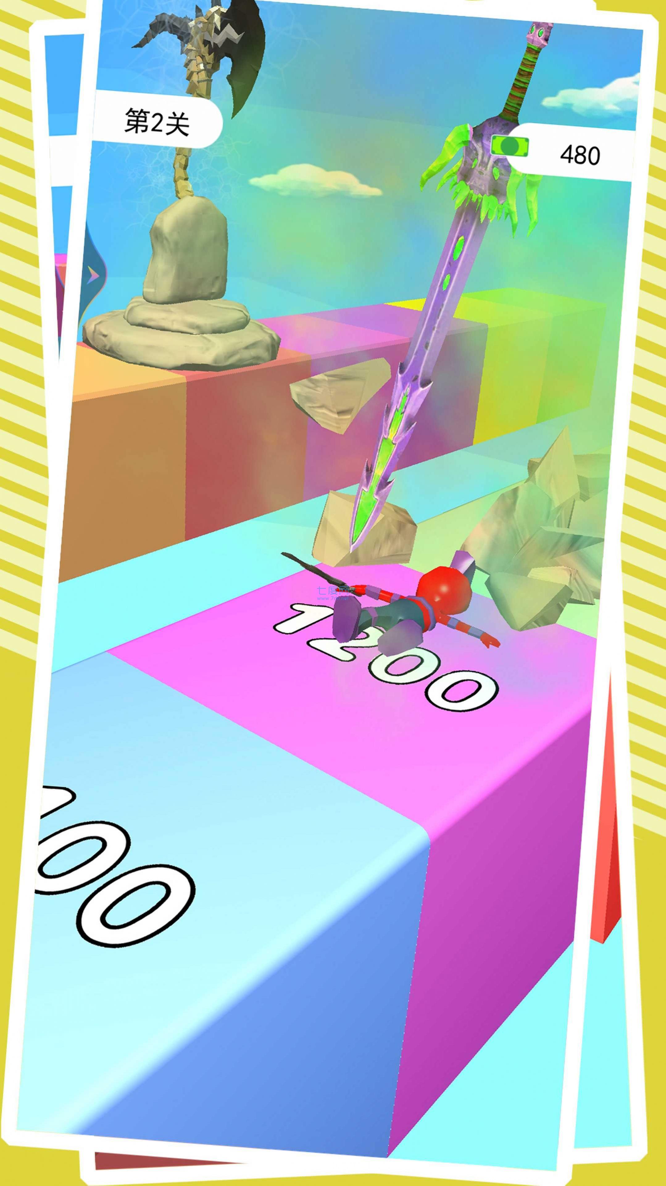 1、一邊跑酷,一邊打造你的劍,躲避障礙否則就會讓你的劍變短;