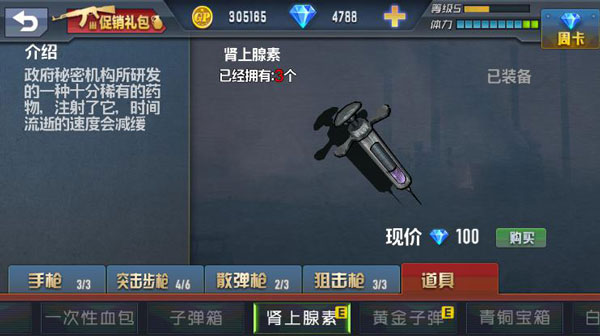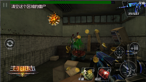 其次是道具的搭配。游戲內(nèi)有手雷、血包、黃金子彈、腎上腺素和子彈箱等五種道具,使用好道具,往往能做到事半功倍的效果。如果有大群小僵尸扎堆,一個(gè)手雷直接搞定;面對(duì)防高血厚的BOSS,用黃金子彈效果最后,三倍傷害;使用子彈箱后,突擊步槍直接變機(jī)槍,形成有效火力壓制;腎上腺素是奇物,居家旅行,滅殺僵尸必備良方。