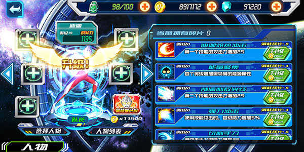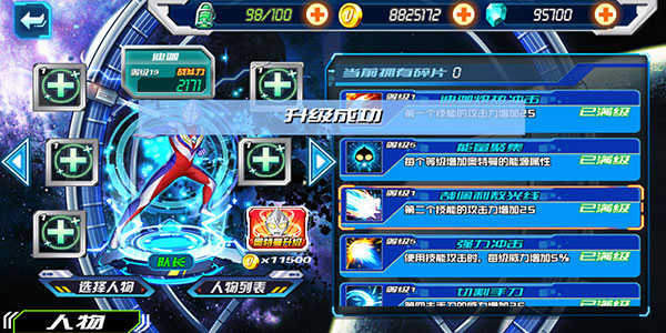 3、提升奧特曼的技能等級(jí)