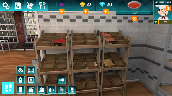 1、廚房準(zhǔn)備,玩家可以提前購買好所需要的調(diào)料以及食物等日常原料,或者檢查廚具是否有損壞需要打電話請師傅來修理等;