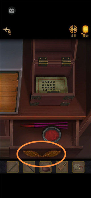 3、回院子往右走,地上撿個荷包,獲得鑰匙,回去開桌子上的盒子,獲得一把釵子。用釵子撬右邊的門。(需要預判,第一次試了好久才過,做攻略這次一把就過啦!)