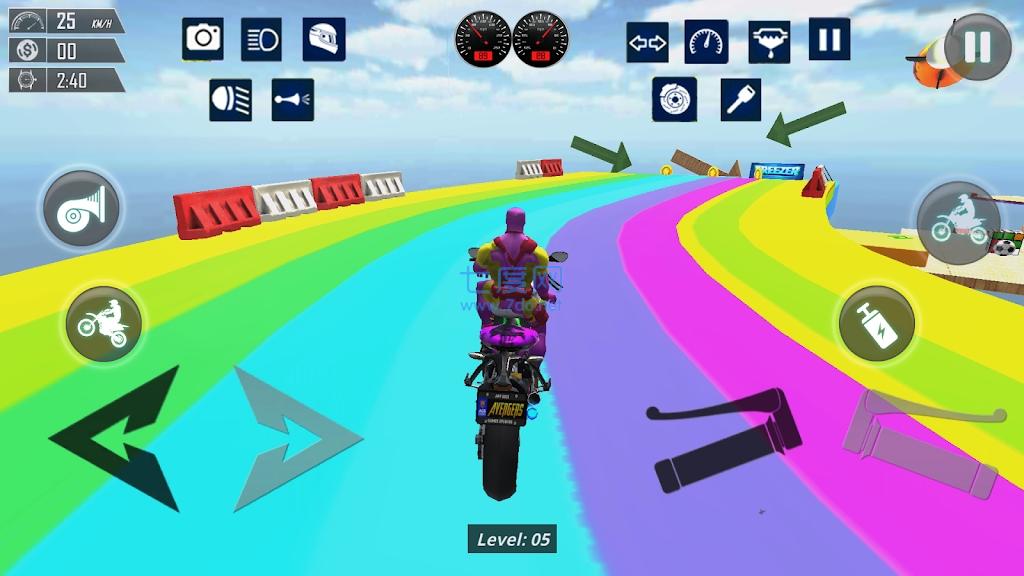 1、在開(kāi)始游戲之前,先熟悉摩托車(chē)的控制方式,包括加速、剎車(chē)、平衡和進(jìn)行特技等操作。