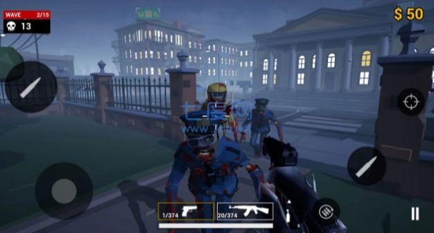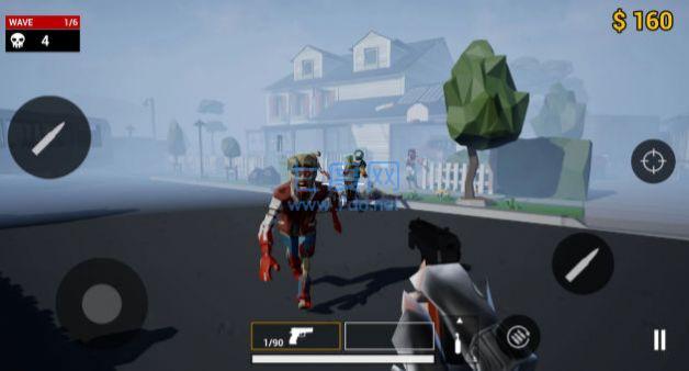 1、通過(guò)指尖滑動(dòng)和點(diǎn)擊的方式,操控角色進(jìn)行射擊,消滅所有的僵尸