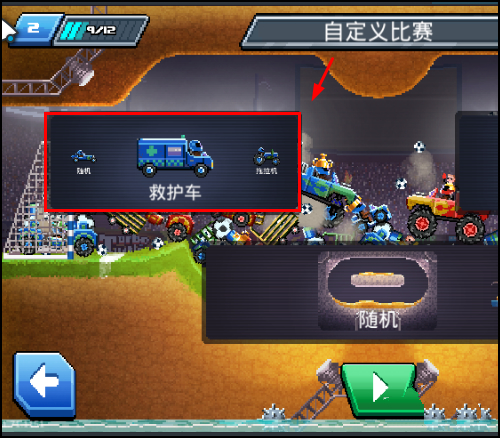 3、進(jìn)入自定義比賽后,在左邊先選擇車輛,如圖所示