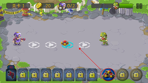 玩家可以點(diǎn)擊右邊地雷進(jìn)行放置,僵尸踩到會(huì)爆炸,并且造成傷害。