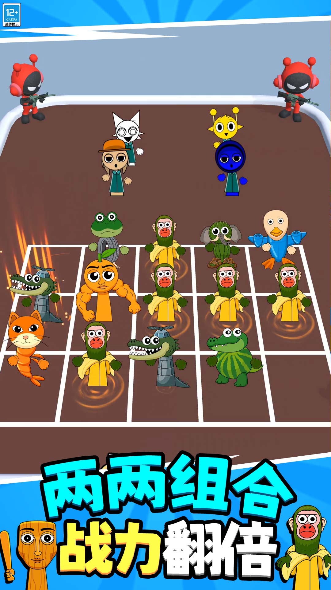 瘋狂冒險吧游戲里面的戰(zhàn)斗由玩家來決定什么時候開始,先在場地上把自己的隊伍排列好,將血量厚的木棍人放在前面,把具有遠程傷害能力的怪物放在最后面,點擊開戰(zhàn)之后,兩個陣營的人才會相互攻擊。玩家可以根據(jù)場上的情況,拖動不同的角色進行合成,讓它們升級為更強大的怪獸。