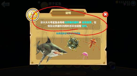 第四種:原子鯊魚 定價:1500個鉆石 技能:這種鯊魚可以吸收化學(xué)廢料自我修復(fù) 在吸收化學(xué)廢料同時也可以獲得短暫的加速
