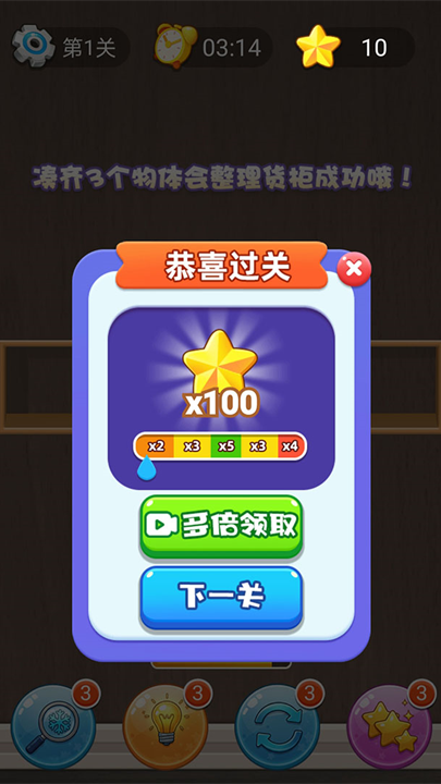3、完成所有物品消除即可成功通關(guān),每一關(guān)的難度都不相同。