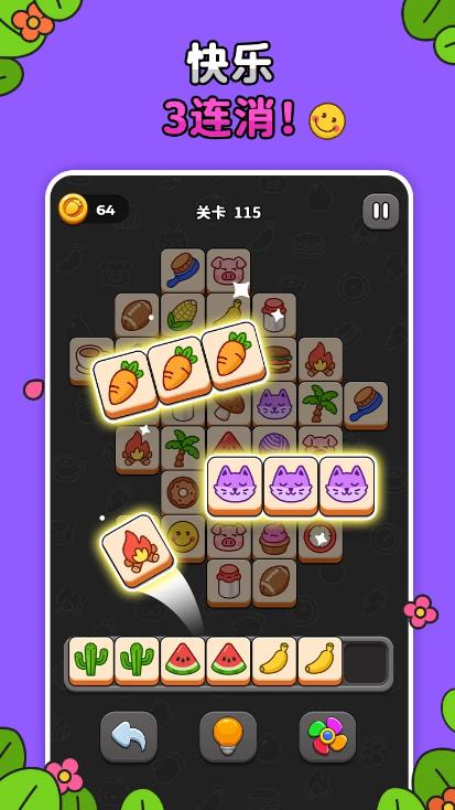 快樂3連消游戲是一款消除類的休閑益智手游。游戲中設(shè)計了各種不同的水果類型和其他物種,可讓玩家在游戲中自由的進行消除。每個關(guān)卡都有限定的時間和步數(shù),所以玩家在挑戰(zhàn)時一定要注意需要在限制類的條件完成任務(wù)。玩法非常的解壓、放松。