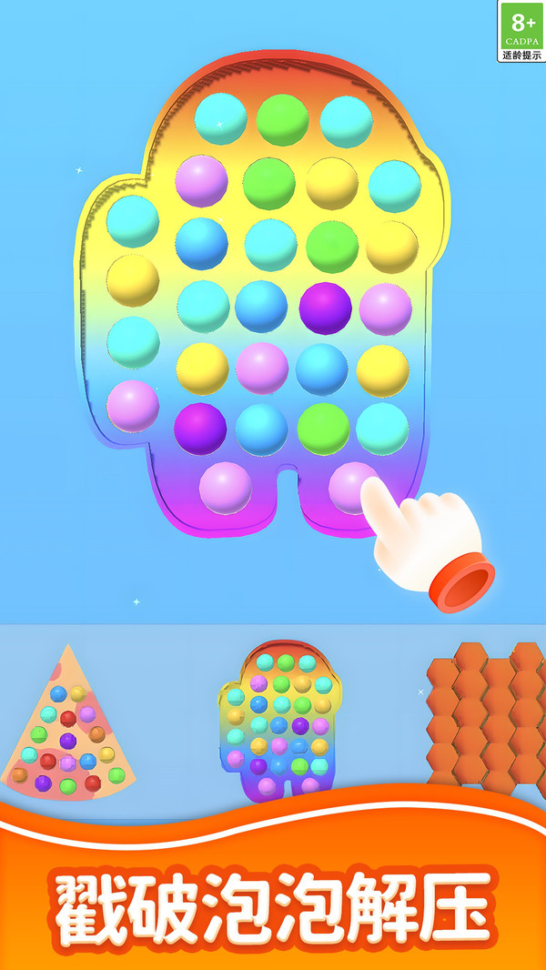 1、戳破多彩泡泡超治愈,壓力跟著泡泡消失,碎片時(shí)間玩超解壓,根本停不下來;