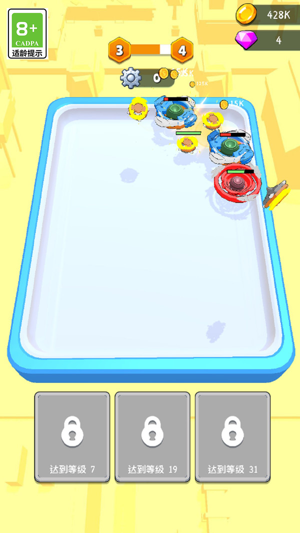 3、玩家通過調整力度與角度控制陀螺旋轉軌跡,模擬真實摩擦力與慣性,增加操作策略性。