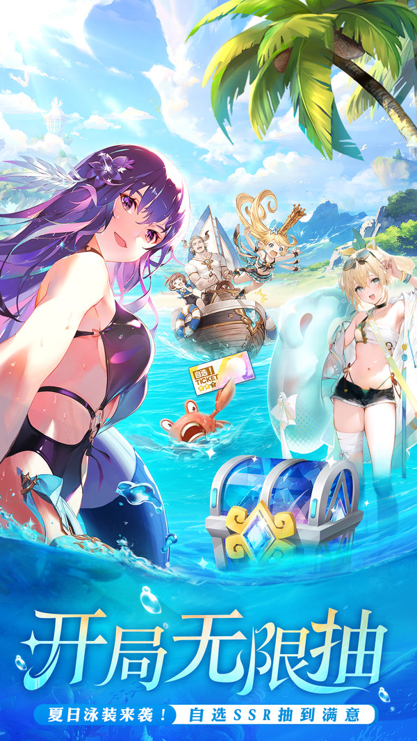 1、抽限定池拿高階女神,普通池保底機制能攢金票換角色。